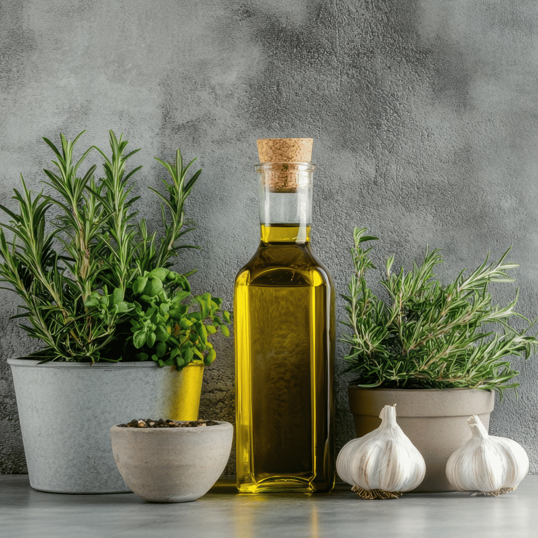 Küüslaugu, basiiliku ja majoraaniga õlid – juurviljatoitudele, caprese salatile, bruschettale ja pastadele