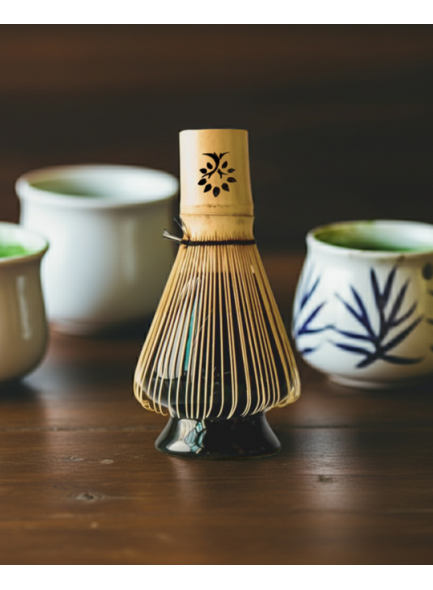 Frustino per matcha in bambù "Chasen". Un aiuto essenziale per la preparazione del matcha tradizionale, in modo che il tè ottenga una schiuma morbida e perfetta. Se usato correttamente, il frustino durerà per anni, ma è perfettamente normale che cambi forma durante l'uso.