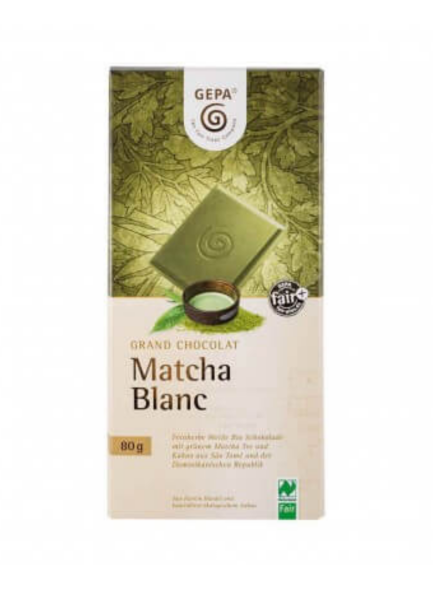 Il Matcha è diventato il simbolo della cultura del tè dell'Estremo Oriente. È un tè verde giapponese noto per il suo gustoso umami e la ricchezza di sostanze nutritive. Queste caratteristiche speciali si trovano ora anche nel cioccolato di alta qualità GEPA. Il cioccolato bianco biologico viene arricchito così da note dolci e fresche di matcha. Un contrasto incredibilmente delizioso che accompagna la cremosità del cioccolato al palato.