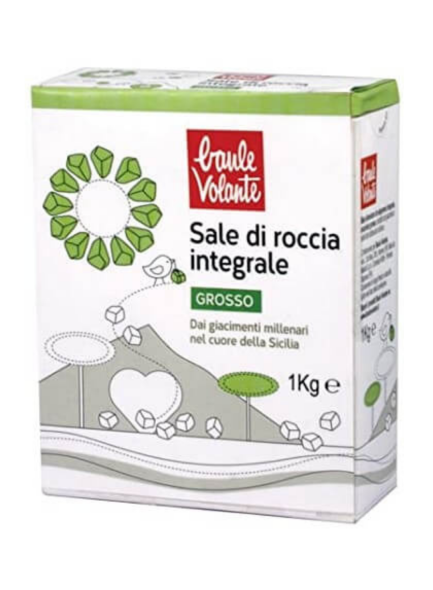 Il sale di roccia integrale grosso Baule Volante è un purissimo salgemma estratto dalle millenarie miniere di sale di Petralia Soprana, nel Parco delle Madonie, in Sicilia. Non subisce alcun processo di trasformazione or di raffinazione. Non presenta alcuna impurità o traccia di inquinamento.