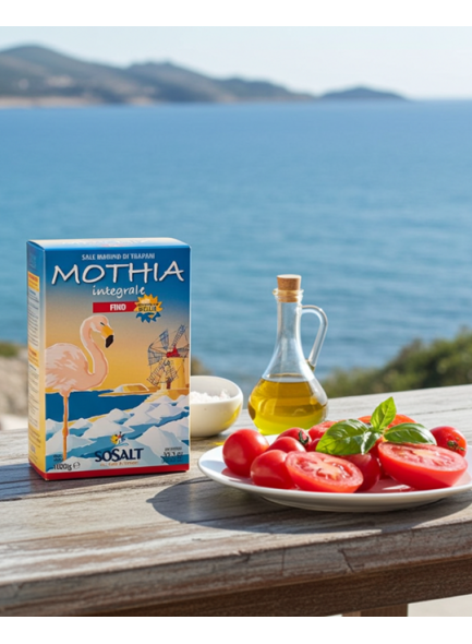 Il purissimo sale marino di viene raccolto a mano in un'oasi naturale in Sicilia, in na zona ricca di saline formatesi dall'evaporazione naturale dell'acqua di mare. Durante il processo di trasformazione non viene sbiancato, nè raffinato e non subisce alcun trattamento chimico. Viene confezionato senza l'aggiunta di additivi antiagglomeranti.