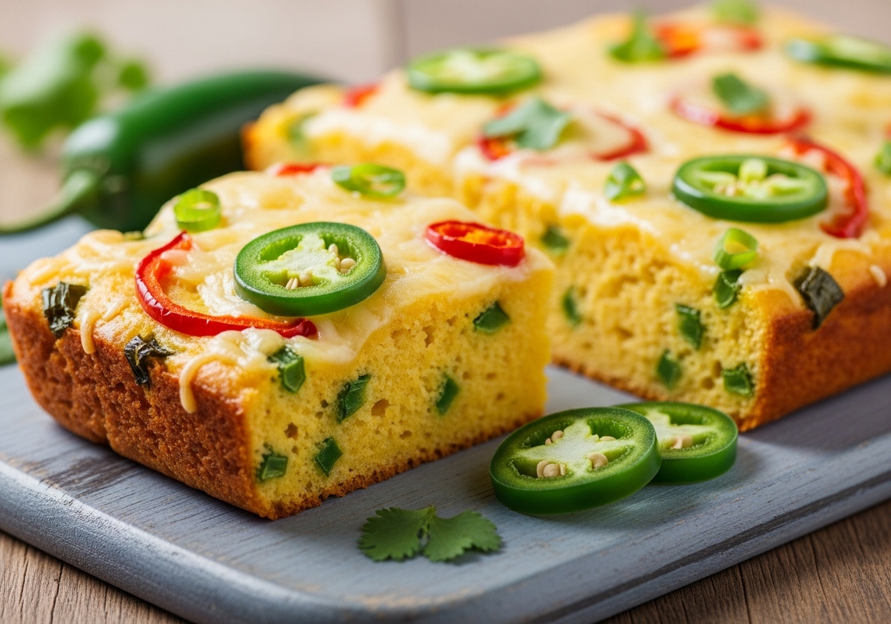 - Vala taigen ettevalmistatud vormi ja silu pealt. Puista peale ülejäänud juust ja aseta kaunistuseks mõned jalapeño viilud.