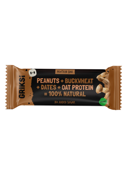 Ingredients: dried sprouted buckwheat* 15%, oat protein* 12%, dates*, peanuts* 28%, sea salt.